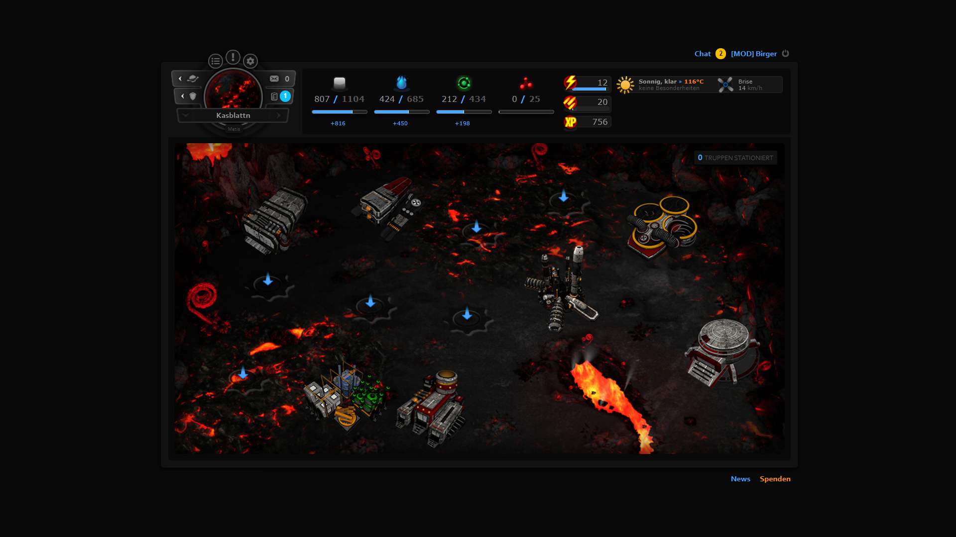 Nun zu einer Sache für die ich bereits viele Ideen habe, aber der "Bock" noch so ein bisschen fehlt es umzusetzen. Die Verteidigungsstellung. Man hat aktuell noch keine Möglichkeit sich aktiv oder passiv gegen Raketenbeschuss zu wehren. Das soll sich natürlich ändern. Dafür ist die Verteidigungsstellung geplant, die zum einen Truppen im Verteidigungsmodus passiv verstärken kann, Truppen-Angriffe aktiv "beschießen" kann, Rakten-Angriffe aktiv und mit passiver warscheinlichkeit abwehren kann. WIE genau das Gebäude funktionieren wird, folgt :)