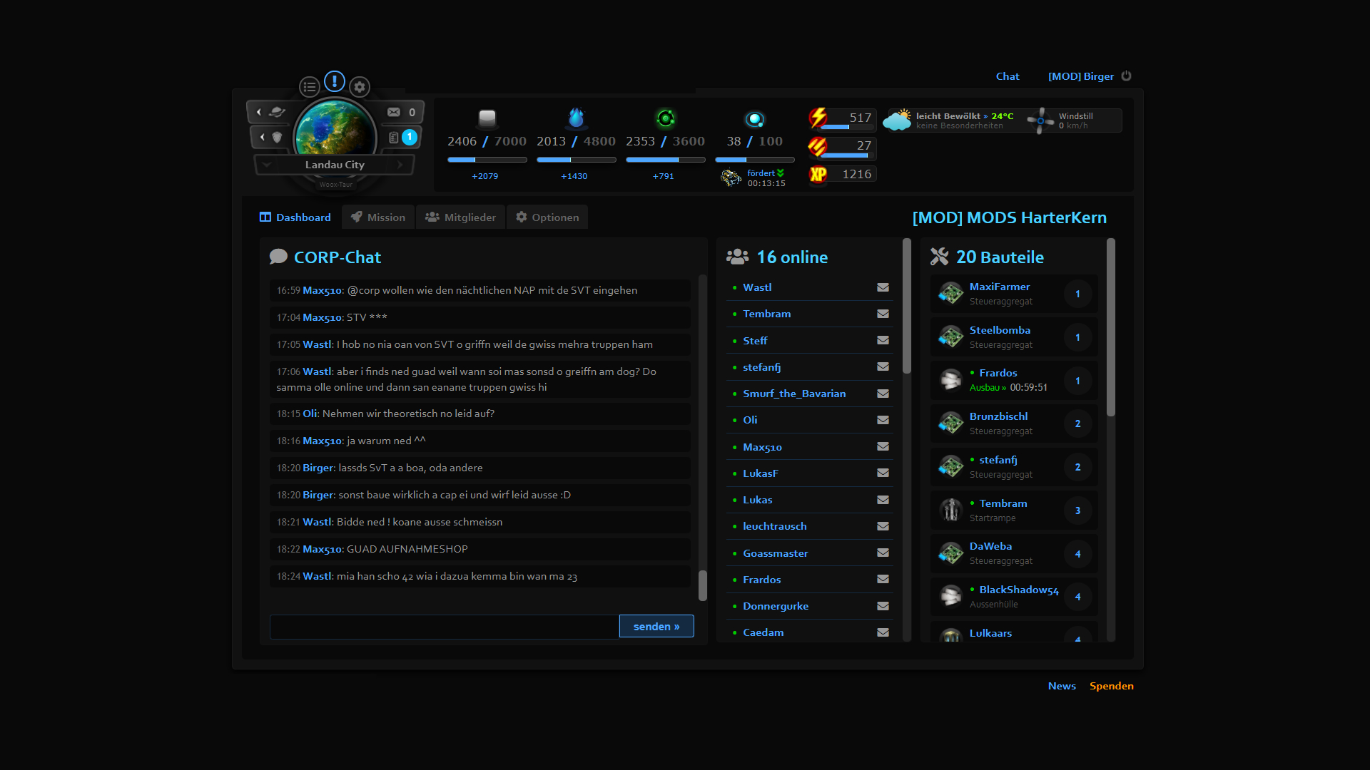 Ebenfalls ein Thema welches bereits begonnen wurde, aber der Bock noch im Aufbau steckt ;) Das Gründen von CORPS bzw. Clans/Gilden ist geplant und auch schon grob ersichtlich mit welchen Funktionen, da ich versehentlich die Datei dafür hochgeladen habe ;)